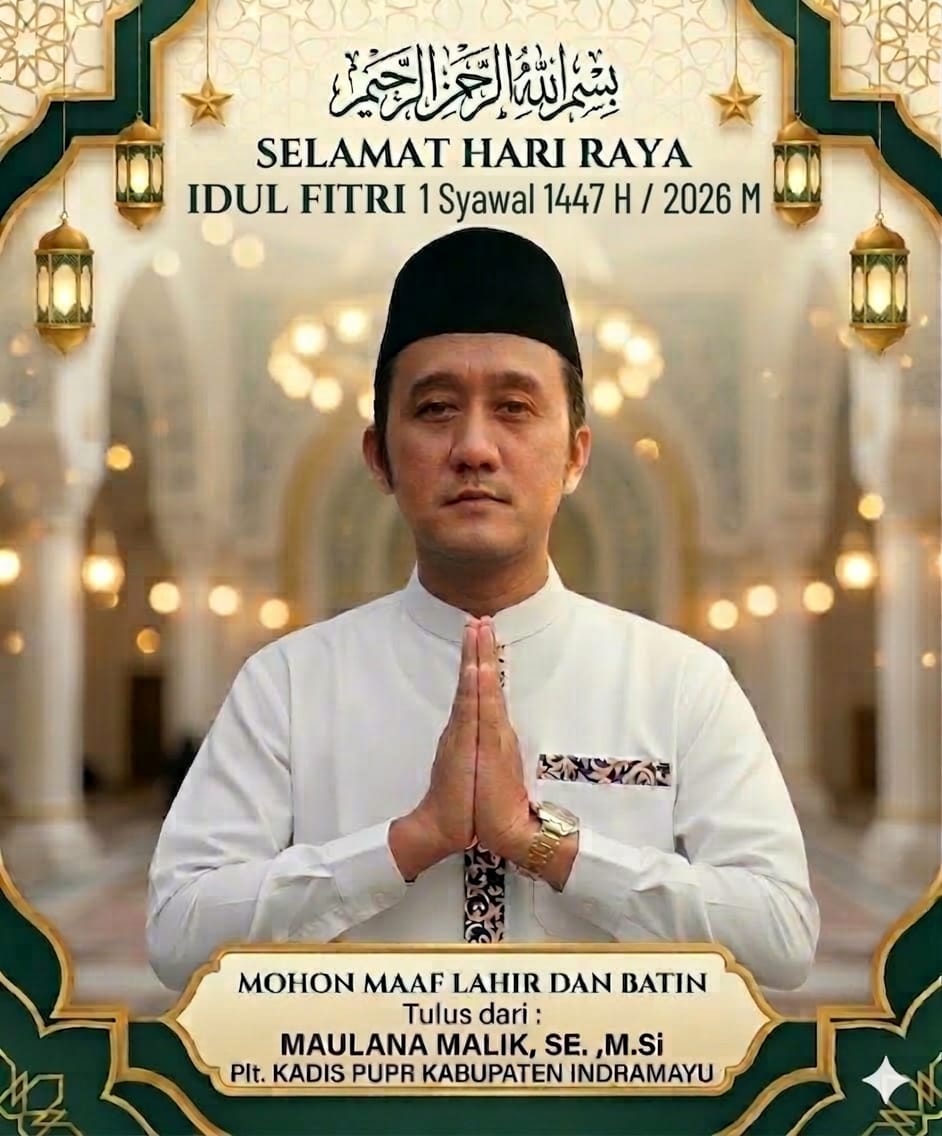 “Atas nama keluarga besar DPUPR Kabupaten Indramayu, kami mengucapkan Selamat Hari Raya Idul Fitri 1447 H / 2026 M. Minal aidin wal faizin, mohon maaf lahir dan batin,” demikian disampaikan dalam pernyataan resminya.