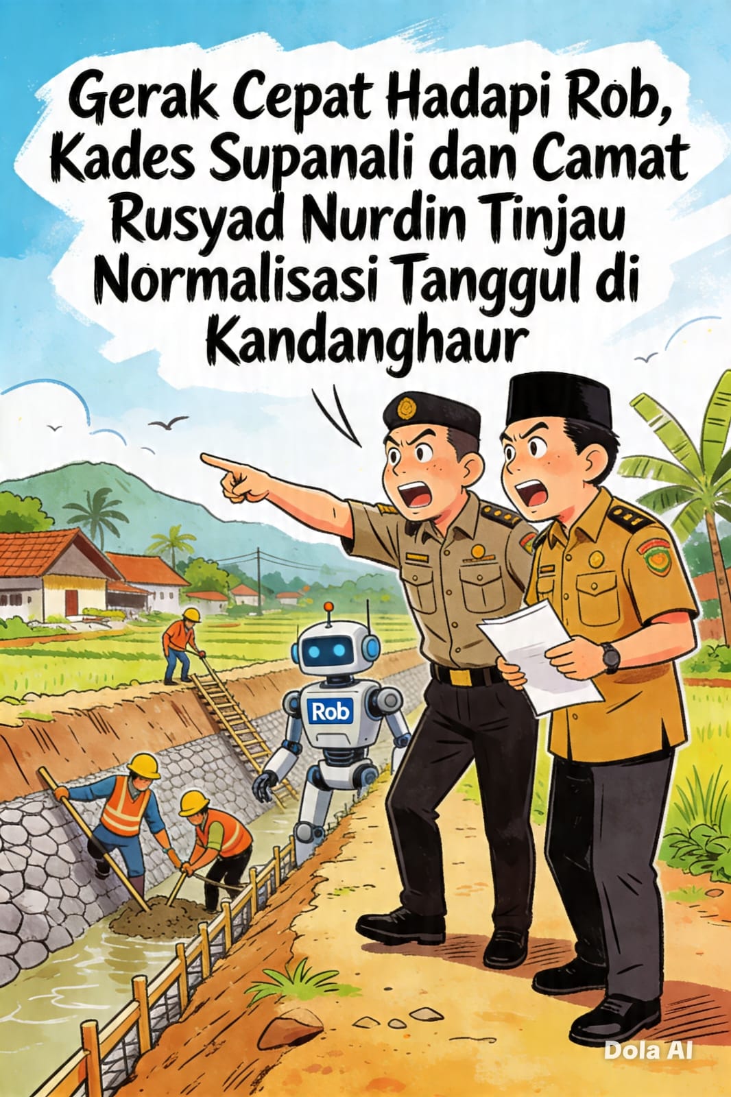 Kegiatan tersebut dilaksanakan pada Selasa, 14 April 2026, dengan melibatkan Kepala Desa Bulak, Supanali, dan Camat Kandanghaur, Rusyad Nurdin, S.T., M.Si. Keduanya turun langsung ke lokasi untuk memastikan proses perbaikan tanggul berjalan sesuai rencana dan tepat sasaran.