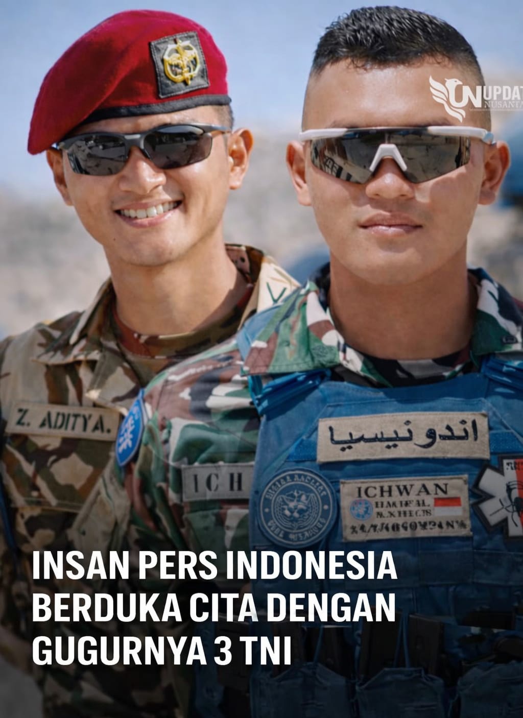– Insan Pers Indonesia bersama Prof. Dr. Sutan Nasomal, SH, MH menyampaikan duka cita yang mendalam atas gugurnya tiga prajurit terbaik Tentara Nasional Indonesia (TNI) yang tengah menjalankan tugas sebagai pasukan penjaga perdamaian dunia.