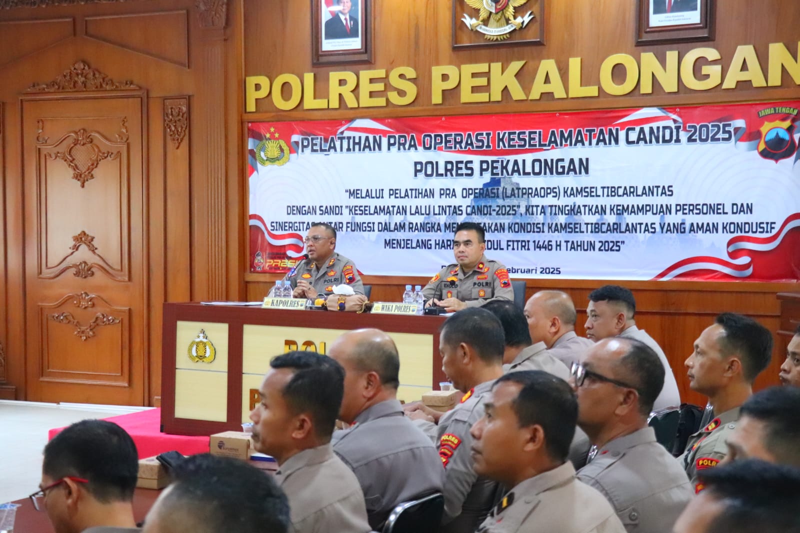 – Polda Jateng – Latihan Pra Operasi (latpraops) Keselamatan Candi 2025 digelar Polres Pekalongan, Jumat siang (07/02/2025). Kegiatan yang dilangsungkan di aula Polres Pekalongan itu, dihadiri oleh Kapolres Pekalongan AKBP Doni Prakoso Widamanto, S.I.K., Wakapolres Pekalongan Kompol Kholid Mawardi, S.H., M.H., PJU Polres Pekalongan, para Kapolsek jajaran Polres Pekalongan serta anggota yang terlibat dalam operasi Keselamatan Candi 2025.
