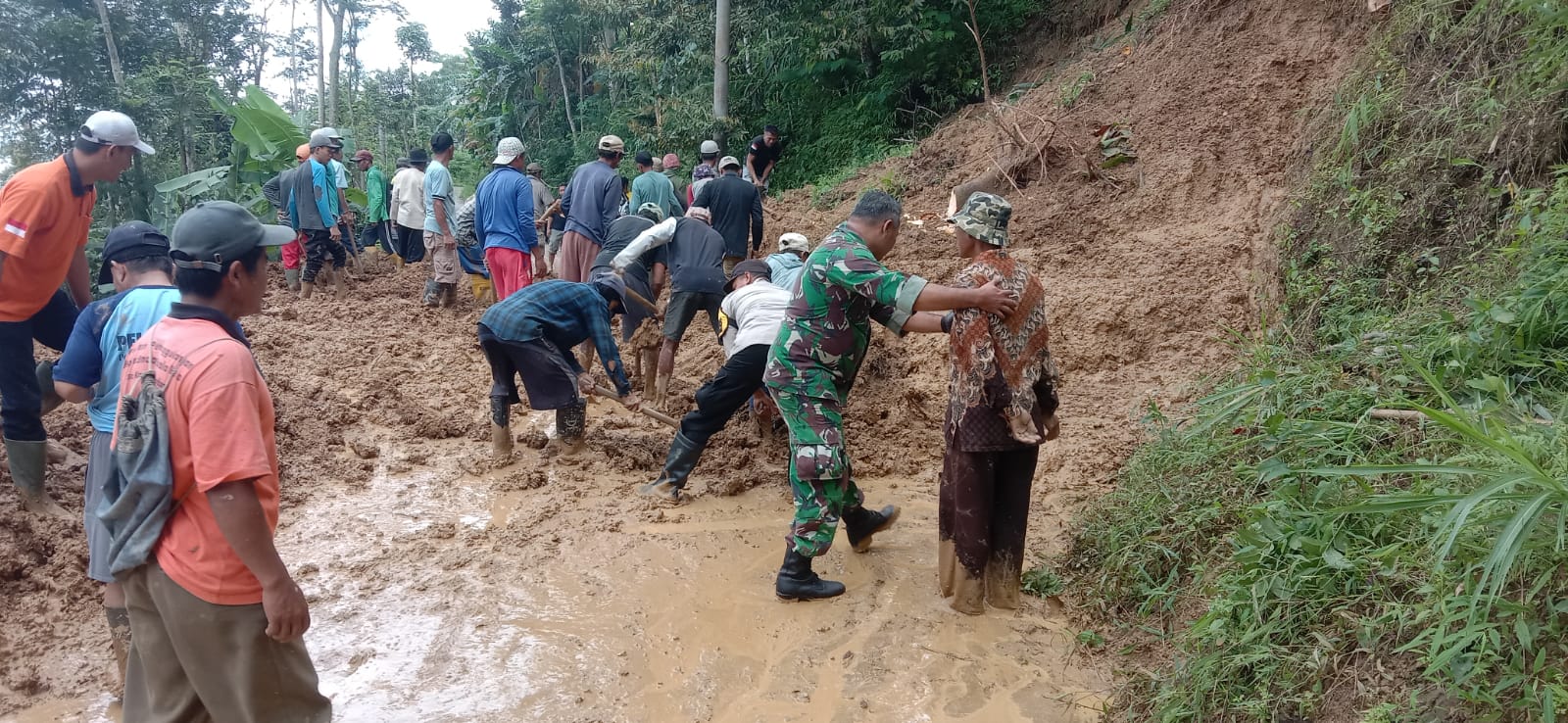 Longsor yang terjadi pada Minggu malam (19/01/2025) menutup akses jalan jalan raya Karanggondang menuju ke Bodas dan Klesem, Polisi dan warga berupaya membuka akses agar bisa dilintasi oleh kendaraan.